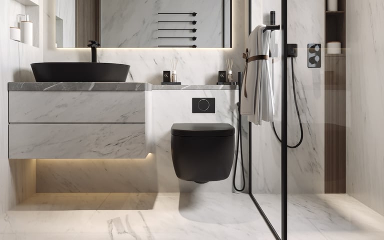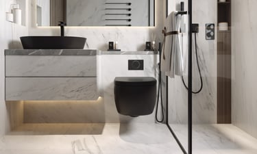 A design that blends functionality and elegance to create a luxurious bathroom experience, reflecting Oak Home identity.